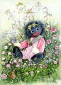 Teddy Bears, Sewing Machines, Garden, Weeds, Dolls, Roses, Pansies etc silk embroidery prints created from Maureen Christie's Artwork on double fuji silk.